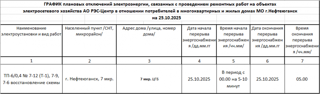 Плановые отключения на 07.10.2024 по городу Пыть-Ях