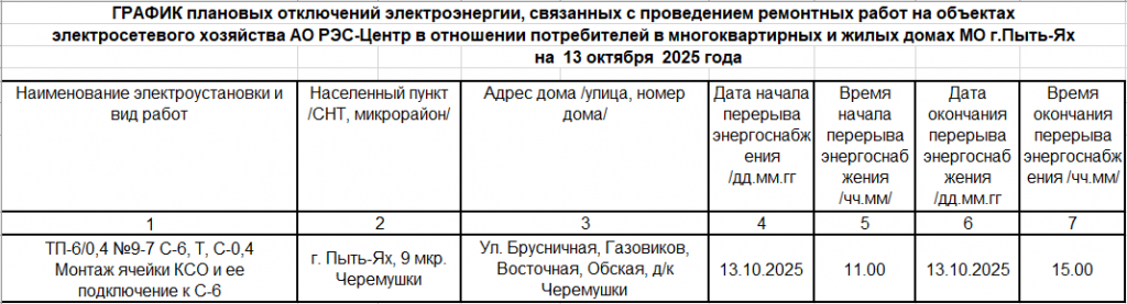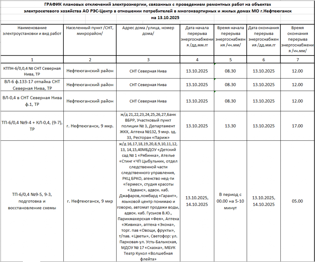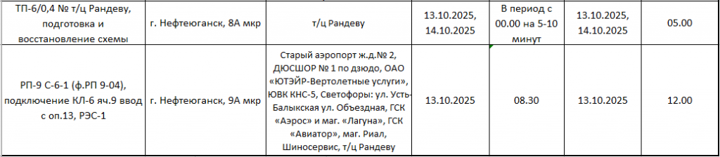 Плановые отключения на 13.10.2024 по городу Пыть-Ях
